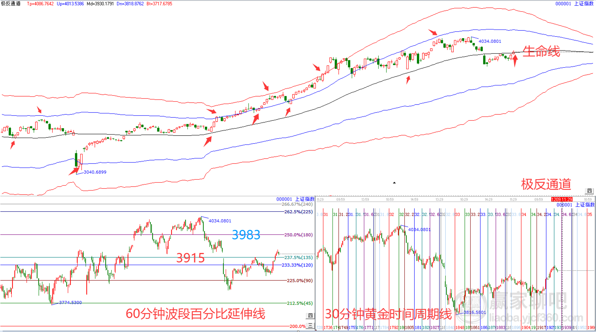 1、趨勢:今日k線收盤于生命線上3918.9674點,近3日若此線支撐站穩(wěn),則進入安全區(qū)域保持看多至強勢通道線4085.4622點。