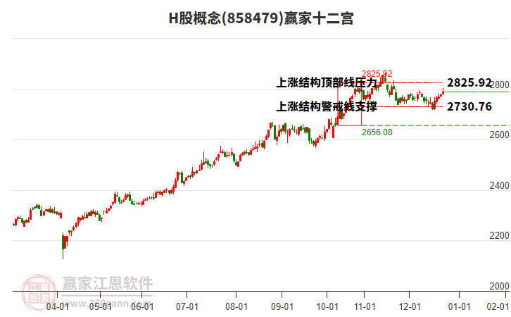今天概念小幅上漲0.26%,目前受到41日前形成的上漲結(jié)構(gòu)頂部線2825.92點(diǎn)壓制,本輪自前方低點(diǎn)12月16日2717.12點(diǎn),上漲至今日已持續(xù)8日,多方能量得到釋放,空方能量逐漸增強(qiáng)。依據(jù)贏家十二宮結(jié)構(gòu)規(guī)則,概念若不能有效突破站穩(wěn)上漲結(jié)構(gòu)頂部線,多方能量逐漸衰竭,空方能量逐漸主導(dǎo),向下方警戒線2730.76點(diǎn)附近尋找新的平衡位。若向上突破站穩(wěn)頂部線2825.92,有望突破前期形成的高點(diǎn)。