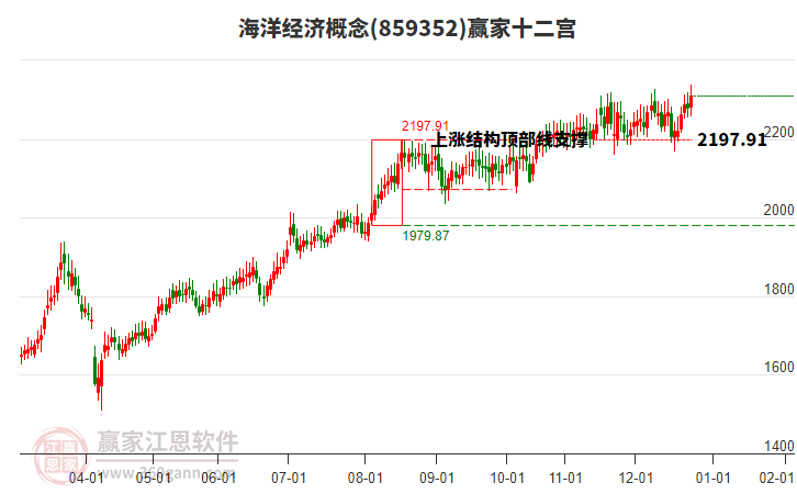 當(dāng)前處于88天前形成的贏家十二宮上漲結(jié)構(gòu)頂部線2197.91點(diǎn)上方,目前此位置由前方低點(diǎn)12月17日上攻至今日,漲幅達(dá)7.41%。依據(jù)贏家十二宮結(jié)構(gòu)規(guī)則,若跌破頂部線,多方能量持續(xù)衰減,上漲動(dòng)能不足,空方能量占據(jù)主導(dǎo),向下警戒線2071.43點(diǎn)尋找多空能量平衡位。