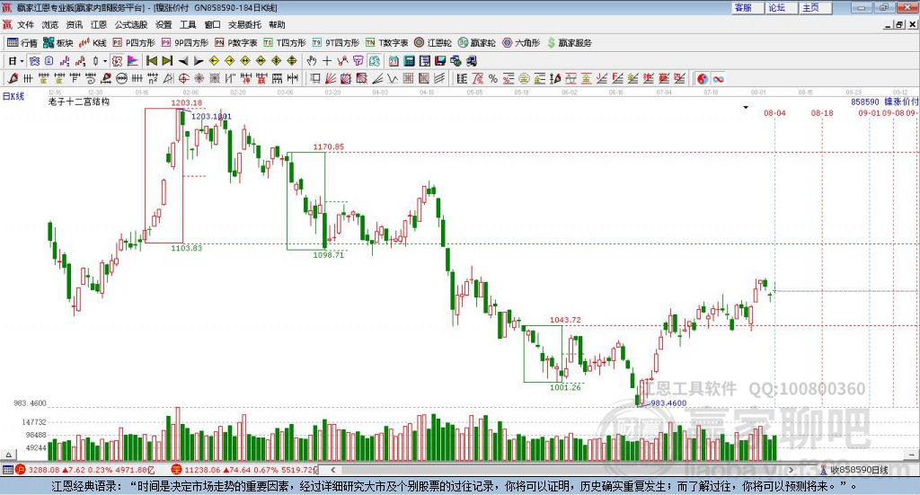 風(fēng)險(xiǎn)提示:本頁面利用《贏家江恩軟件》《贏家十二宮軟件》系列工具客觀數(shù)據(jù)進(jìn)行數(shù)據(jù)模型運(yùn)算,系軟件圖表語言,由此得出的相關(guān)結(jié)論,不供參考,不構(gòu)成任何投資建議。贏家財(cái)富網(wǎng)版權(quán)所有,轉(zhuǎn)載請注明出處。