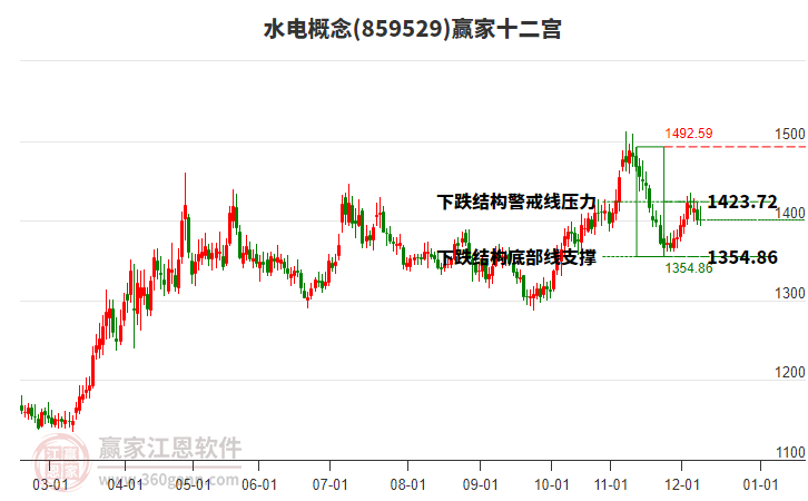 今日概念處于2025年11月24日形成的下跌結構底部線1354.86點上方區(qū)域,自近期高點1390.11跌至今日1379.19,跌幅0.79%。依據(jù)贏家十二宮多空能量守恒規(guī)則,若概念不能有效站穩(wěn)底部線,下方多空能量平衡位需結合前方贏家十二宮結構尋找。