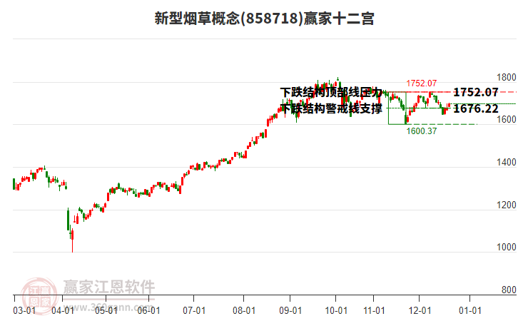 目前概念處于前期2025年11月21日形成的下跌結(jié)構(gòu)頂部線1752.07點上方,近期概念在此位置呈現(xiàn)震蕩走勢,震蕩區(qū)間為1755.78-1643.11,今日收盤1763.53點,小幅下跌0.22%。依據(jù)贏家十二宮多空能量守恒規(guī)則,下跌結(jié)構(gòu)頂部線是多空能量轉(zhuǎn)換的關(guān)鍵位置,多方能量已連續(xù)釋放,空方能量不斷聚集。當前概念若能站穩(wěn)上漲結(jié)構(gòu)頂部線1752.07,多方有望再一次發(fā)動上攻,若跌破上漲結(jié)構(gòu)頂部線,則概念將會向下警戒線1676.22點位置附近尋找新的平衡位。