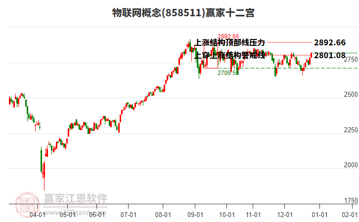 當(dāng)天概念以中十字星收盤,目前概念處于紅色區(qū)域(上漲趨勢),K線收于多頭出局線上方,保持強(qiáng)勢,短期看多,近期高點(diǎn)為12月26日2832.68點(diǎn)位,低點(diǎn)為12月17日2657.3點(diǎn)位,概念經(jīng)過7日上攻至目前形成一波上漲,后市關(guān)注是否能夠繼續(xù)突破2832.68,如能繼續(xù)突破將會形成上行趨勢,若未能突破,將繼續(xù)震蕩,若跌破箱體低點(diǎn),將形成短期下行趨勢。