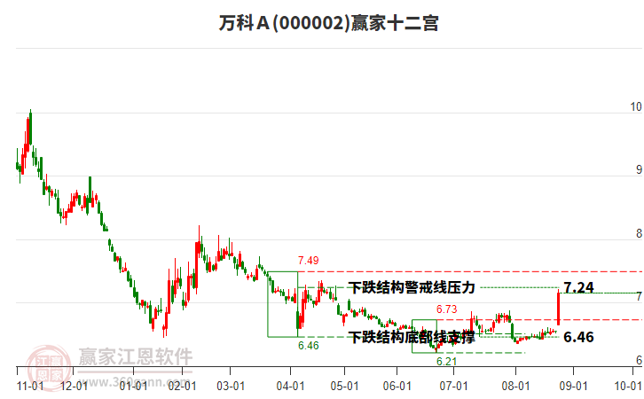 000002萬科A目前漲停,所屬板塊房地產(chǎn)發(fā)出多頭預警信號,物業(yè)管理、冰雪產(chǎn)業(yè)短期底分型后持續(xù)上攻。000002萬科A截止目前突破極反通道弱勢外軌線,根據(jù)贏家江恩極反通道趨勢工具展示,上方壓力位5.3