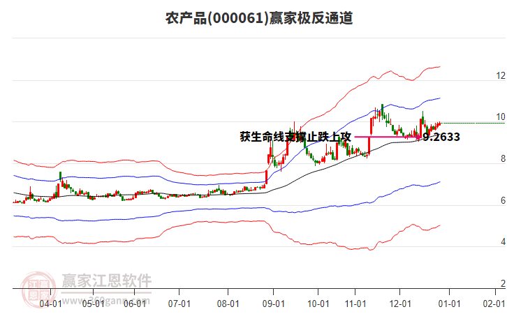 依據(jù)贏家江恩系統(tǒng)趨勢工具極反通道分析判斷農(nóng)產(chǎn)品000061運(yùn)行在生命線以下弱勢區(qū)域,根據(jù)規(guī)則該股短線輕倉參與,股價跌至弱勢外軌線后波段再結(jié)合其它工具信號建倉。應(yīng)用口訣是:生命線上強(qiáng)勢走,生命線下難抬頭;紅黃兩條外軌線,壓力支撐顯勢頭。