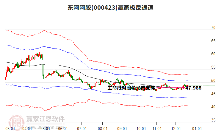東阿阿膠(000423)根據(jù)贏家江恩極反通道趨勢(shì)工具展示,上方壓力位47.854,下方支撐位44.3026。東阿阿膠(000423)處于贏家江恩空頭主線形態(tài),10月15日發(fā)出江恩筑底信號(hào)后,經(jīng)過(guò)55日