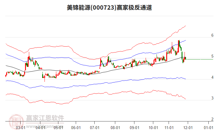 000723美錦能源目前漲停,走出獨立行情。000723美錦能源截止目前突破極反通道強勢通道線,根據(jù)贏家江恩極反通道趨勢工具展示,上方壓力位6.32,下方支撐位5.6975。美錦能源今日低開,截止目前