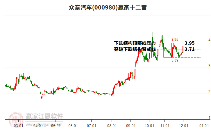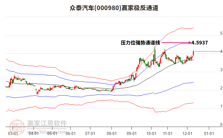 眾泰汽車處于贏家江恩多頭次主線形態(tài),11月19日發(fā)出江恩筑底信號后,經(jīng)過35日,今日形成短期筑頂信號,短期多頭趨勢已被破壞,中長期多頭趨勢依舊保持。眾泰汽車根據(jù)贏家江恩極反通道趨勢工具展示,上方壓力位