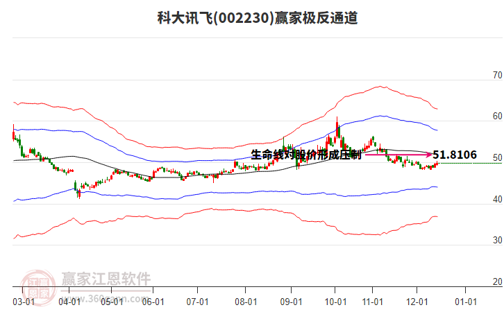 依據(jù)贏家江恩系統(tǒng)趨勢工具極反通道分析判斷科大訊飛002230運行在生命線以上強勢區(qū)域,根據(jù)規(guī)則該股可短線、波段結(jié)合操作;結(jié)合物極必反的原理通過分鐘圖做盤中差價,應用口訣是:生命線上強勢走,生命線下難抬頭;紅黃兩條外軌線,壓力支撐顯勢頭。