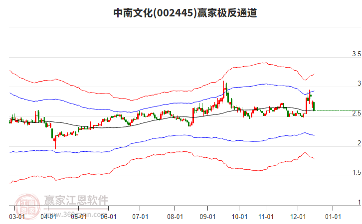 12月11日中南文化002445最高價2.95上穿了贏家極反通道工具藍(lán)色外軌線,受到藍(lán)色外軌線強(qiáng)力壓制,最終收盤停留在在藍(lán)色外軌線與生命線上方的強(qiáng)勢通道區(qū)域。中南文化002445近10個交易日漲幅13