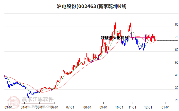 002463滬電股份處于贏家江恩多頭中期回調(diào)形態(tài),今日重心持續(xù)下移,短期延續(xù)下跌趨勢(shì),11月10日發(fā)出中期江恩筑底信號(hào)后,經(jīng)過(guò)4日,今日形成中期筑頂信號(hào),若持續(xù)下跌,觸發(fā)長(zhǎng)期筑頂信號(hào),002463滬電