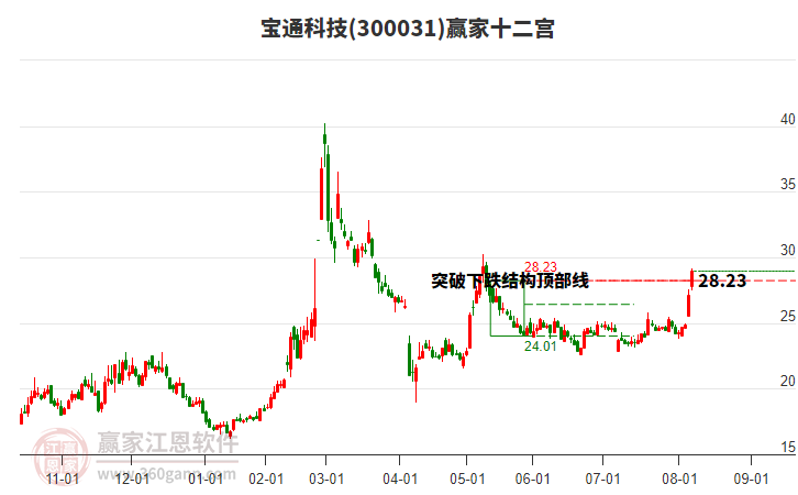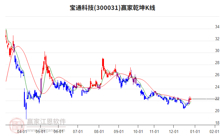 300031寶通科技處于贏家江恩多頭中期回調(diào)形態(tài),6月13日發(fā)出江恩筑頂信號(hào)后,經(jīng)過(guò)158日,今日再次發(fā)出江恩底分型并發(fā)出江恩筑底信號(hào),中期多頭反彈趨勢(shì)延續(xù),但長(zhǎng)期處于回調(diào)中。300031寶通科技根據(jù)