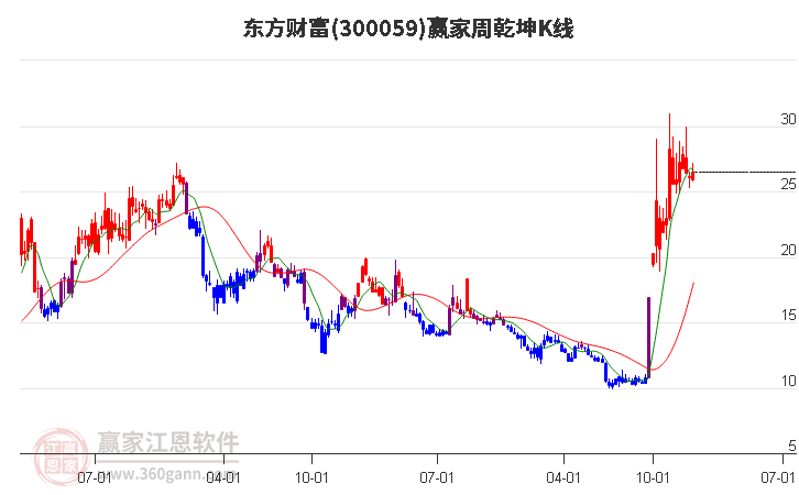 東方財富(300059)低開收上影陰十字星,近30日下跌16.17%