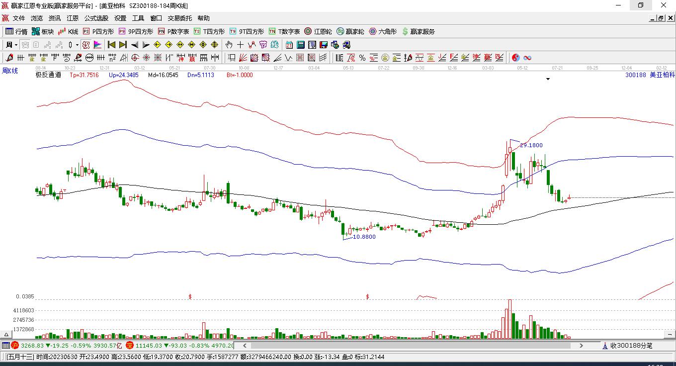 300188國投智能處于贏家江恩多頭主線形態(tài),從11月24日形成底分型后持續(xù)上攻,今日突破前高形成初次江恩筑底信號,中長期目前都處于回調(diào)中。300188國投智能根據(jù)贏家江恩極反通道趨勢工具展示,上方壓