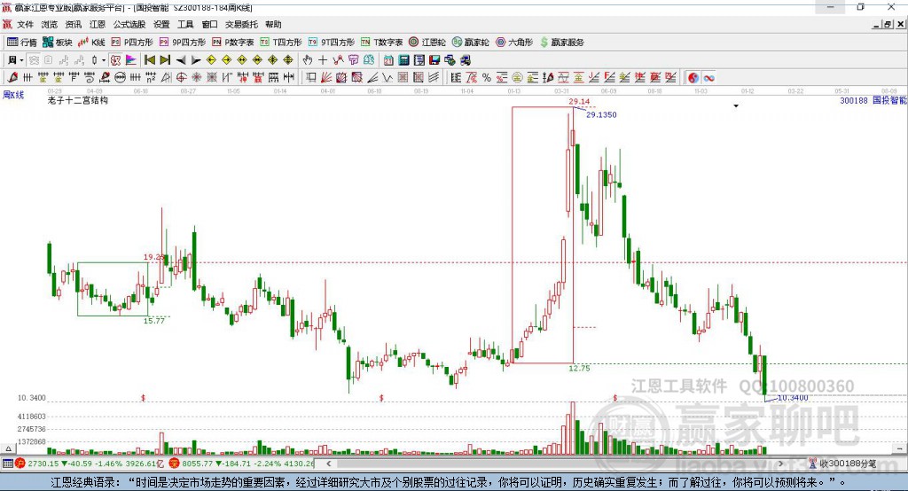 依據(jù)贏家江恩乾坤K線工具展示,目前股價處于藍(lán)色區(qū)域,本周K線以陽線收盤,周K線收于出局線下方。近期波段低點為12月19日13.7點,若跌破前期低點13.7,將形成短期下行趨勢,如短期股價快速進(jìn)入紅色區(qū)域,有望走出震蕩區(qū)域。