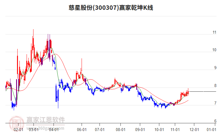 今日慈星股份最高價7.96上穿了贏家極反通道工具藍色外軌線,受到藍色外軌線強力壓制,最終收盤停留在在藍色外軌線與生命線上方的強勢通道區(qū)域。慈星股份近10個交易日漲幅7.16%。