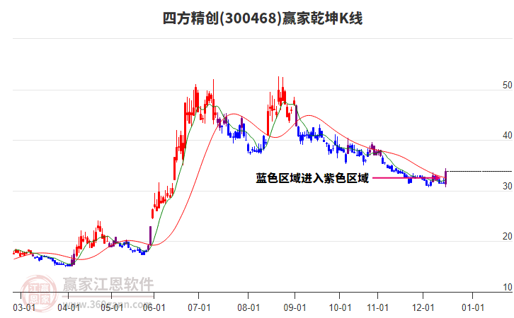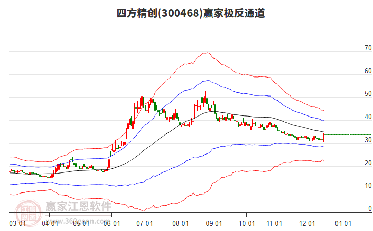 12月24日四方精創(chuàng)300468最高價(jià)34.2上穿了贏家極反通道工具生命線,受到生命線強(qiáng)力壓制,最終收盤停留在在生命線與藍(lán)色下軌線上方的弱勢(shì)通道區(qū)域。四方精創(chuàng)300468近10個(gè)交易日漲幅5.84%。