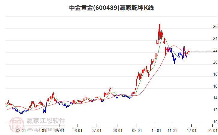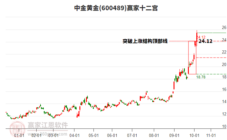 中金黃金根據(jù)贏家江恩極反通道趨勢(shì)工具展示,上方壓力位25.9728,下方支撐位22.4106。中金黃金處于贏家江恩多頭次主線形態(tài),11月19日發(fā)出江恩筑底信號(hào)后,經(jīng)過(guò)29日,今日形成短期筑頂信號(hào),短期