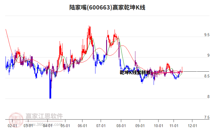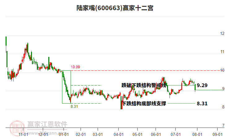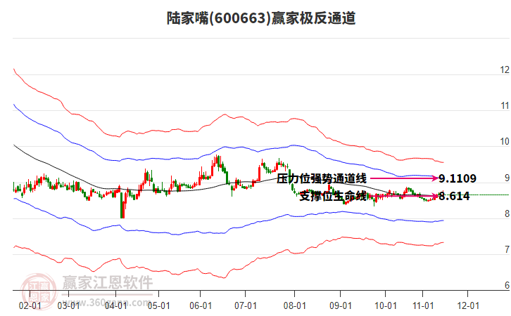 依據(jù)贏家江恩系統(tǒng)趨勢工具極反通道分析判斷陸家嘴600663運行在生命線以下弱勢區(qū)域,根據(jù)規(guī)則該股短線輕倉參與,股價跌至弱勢外軌線后波段再結(jié)合其它工具信號建倉。應(yīng)用口訣是:生命線上強勢走,生命線下難抬頭;紅黃兩條外軌線,壓力支撐顯勢頭。