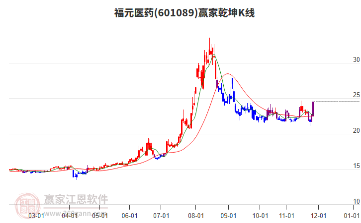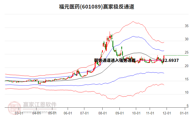 目前601089福元醫(yī)藥最高價(jià)26.66挑戰(zhàn)了贏家極反通道工具藍(lán)色外軌線,受到藍(lán)色外軌線強(qiáng)力壓制,最終收盤(pán)停留在在藍(lán)色外軌線與生命線上方的強(qiáng)勢(shì)通道區(qū)域。601089福元醫(yī)藥近10個(gè)交易日漲幅10.47