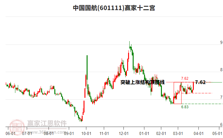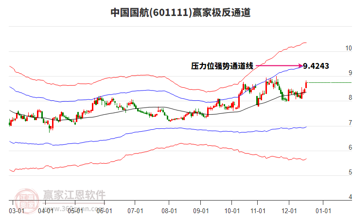 中國國航(601111)根據(jù)贏家江恩極反通道趨勢工具展示,上方壓力位8.3088,下方支撐位6.9367。中國國航(601111)處于贏家江恩多頭主線形態(tài),11月10日發(fā)出江恩筑頂信號后,經(jīng)過31日,