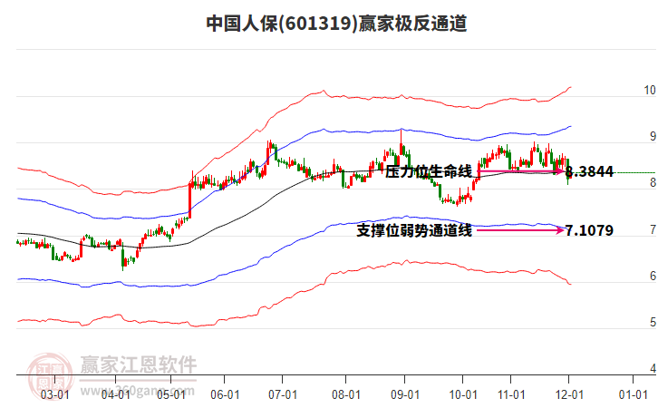 依據(jù)贏家江恩系統(tǒng)趨勢工具極反通道分析判斷中國人保601319運行在生命線以下弱勢區(qū)域,根據(jù)規(guī)則該股短線輕倉參與,股價跌至弱勢外軌線后波段再結(jié)合其它工具信號建倉。應(yīng)用口訣是:生命線上強勢走,生命線下難抬頭;紅黃兩條外軌線,壓力支撐顯勢頭。