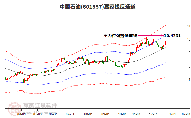 今天中國石油最高價10.32挑戰(zhàn)了贏家極反通道工具上方紅色外軌線,受到上方紅色外軌線強力壓制,最終收盤停留在在上方紅色外軌線與藍(lán)色外軌線上方的超強通道區(qū)域。中國石油近10個交易日漲幅7.76%。