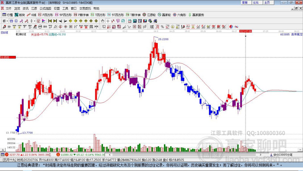 今天吉祥航空603885最高價13.76上穿了贏家極反通道工具生命線,受到生命線強(qiáng)力壓制,最終收盤停留在在生命線與藍(lán)色下軌線上方的弱勢通道區(qū)域。吉祥航空603885近10個交易日漲幅5.95%。