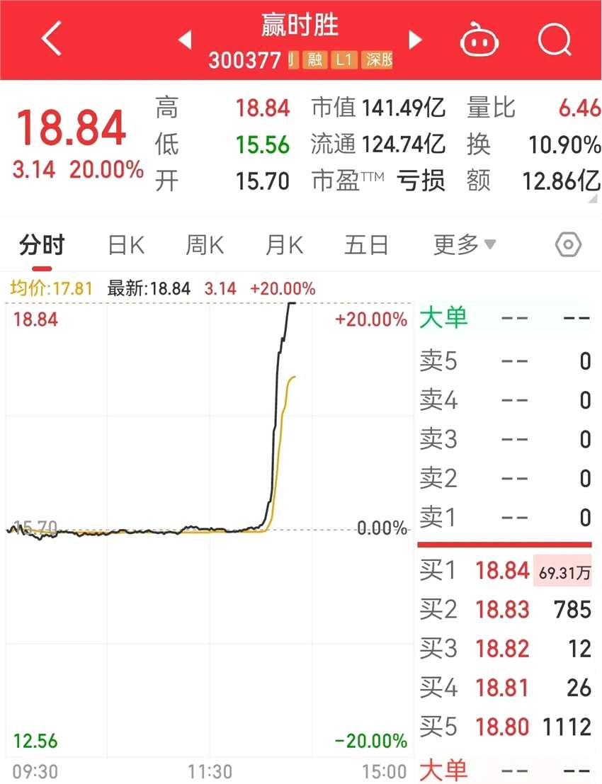 13時31分,A股突發(fā)!601696、300377,率先漲停