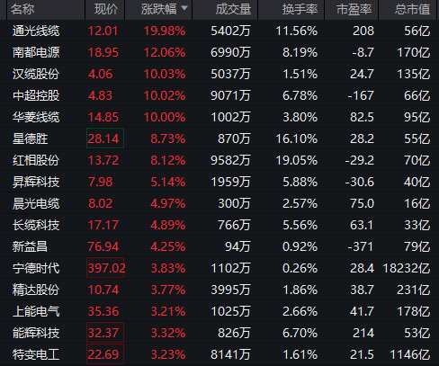 特高壓、電工電網(wǎng)板塊走強(qiáng),通光線纜(300265)實(shí)現(xiàn)20%漲停,漢纜股份(002498)、中超控股(002471)、華菱線纜(001208)漲停。