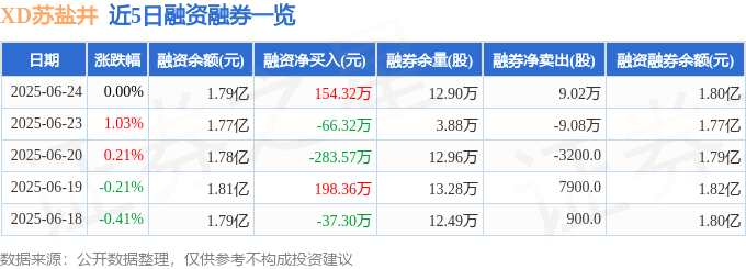 XD蘇鹽井融資融券信息顯示,融資方面,當(dāng)日融資買入937.71萬元,融資償還783.39萬元,融資凈買入154.32萬元。融券方面,融券賣出10.0萬股,融券償還9800.0股,融券余量12.9萬股,融券余額121.0萬元。融資融券余額1.8億元。